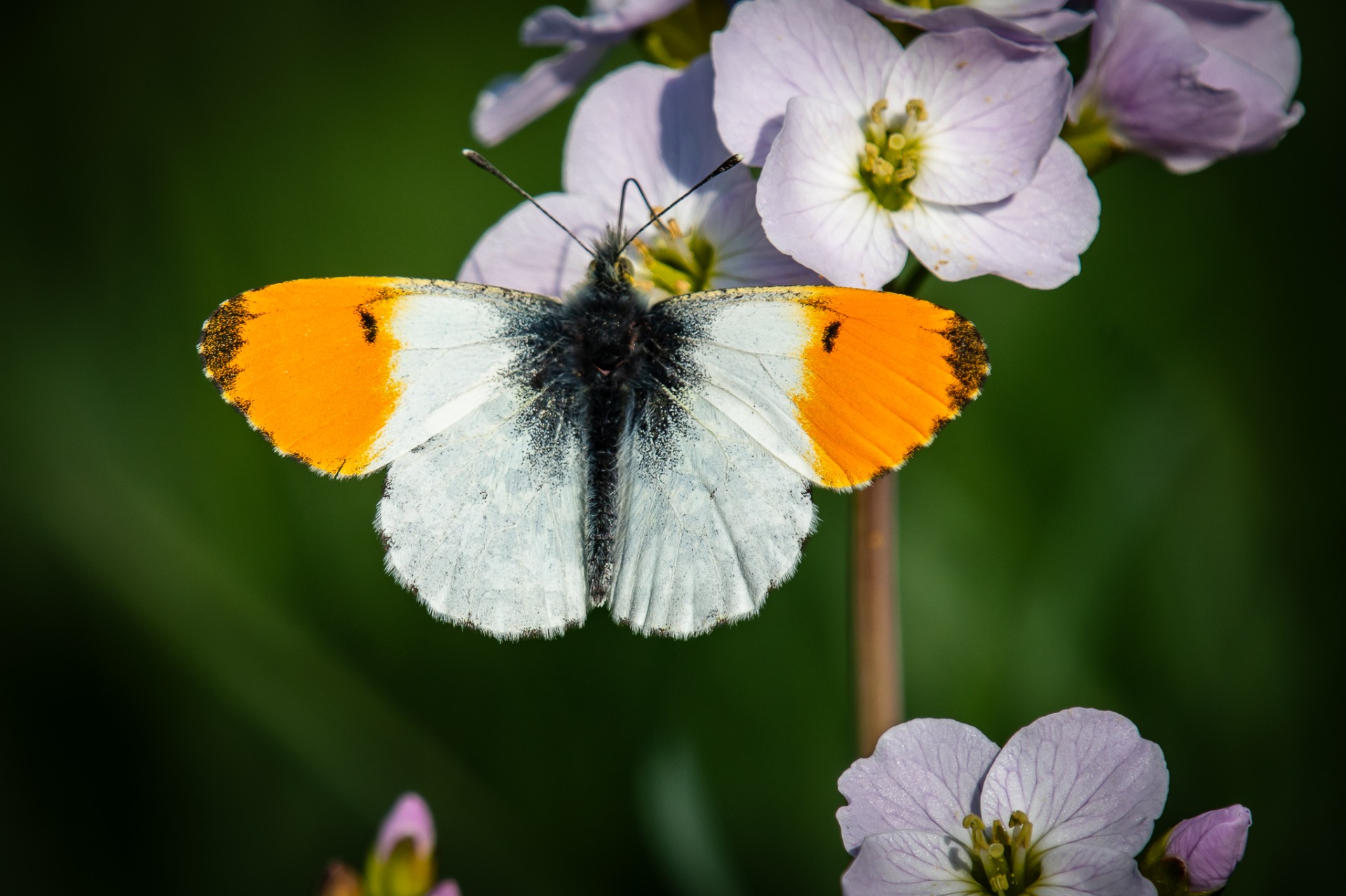 A selection of 6x4 Orange-tip butterfly photos with a white frame and a packet of Irish wildflower seeds.